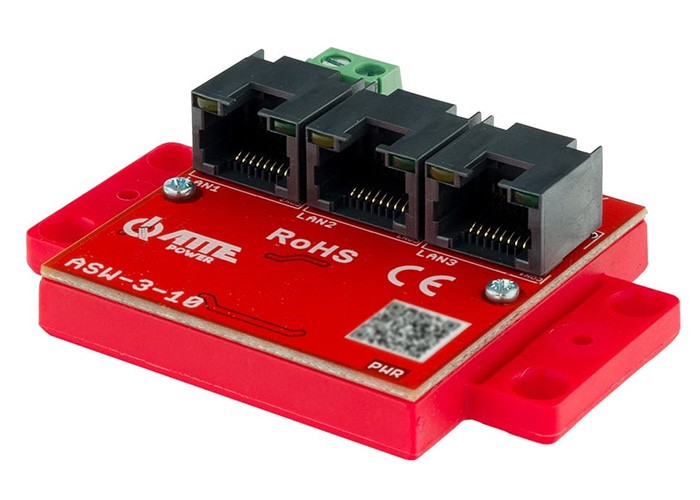 ASW-3-10 è uno switch LAN miniaturizzato non gestito a 3 porte con throughput di 10/100 Mbps. Consente di estendere la LAN su distanze superiori a 100 m con un segmento aggiuntivo. Il dispositivo viene utilizzato anche per la distribuzione del segnale LAN.