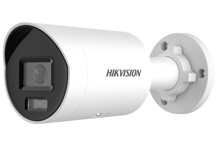 Telecamera Bullet SuperColorVu HikAI-ISP per la riduzione del rumore, 4MP (2688×1520 pixel) a 25 Fps. Di tipo Day&Night con filtro IR meccanico, Smart Hybrid Light illuminatori IR e luce bianca integrati portata 40 m, Sensore CMOS a scansione progressiva 1/1.8", sensibilità colore 0.0001 Lux @ (F1.0, AGC ON) 0 Lux con illuminatori. WDR 130dB, 3D-DNR, BLC, Ottica fissa 2.8mm, algoritmo di compressione H.265+, H.265, H.264+, H.264. Dual Stream, 6 connessioni simultanee, Funzioni Smart: ROI. Standard ONVIF Profile S, Profile G, Profile T. Protocolli TCP/IP, ICMP, HTTP, HTTPS, FTP, DHCP, DNS, DDNS, RTP, RTSP, RTCP, NTP, UPnP, SMTP, IGMP, 802.1X, QoS, IPv4, IPv6, UDP, Bonjour, SSL/TLS, PPPoE, SNMP, WebSocket, WebSockets, SRTP, SFTP. Motion Detection 3.0 con filtro Human&Vehicle, video tampering. Modalità "Rotate" di inquadratura in 9:16, privacy mask. Slot SD Card 1 microSD/SDHC/SDXC fino a 512 GB (non fornita). Registrazione su NAS (NFS, SMB/CIFS), Scheda di rete Ethernet 100 Mbps. Notifica all'NVR Smart per una ricerca avanzata delle registrazioni, notifica al sw di centralizzazione, invio email. Supporta accesso a Hik-Connect. Web server di tipo multi browser, heartbeat, Alimentazione 12 VDC ± 25%, 0.4 A oppure PoE: IEEE 802.3af, Class 3, max. 6.5 W, protezione inversione di polarità, IP67, anticorrosione NEMA 4X. Temperatura di esercizio -30 °C ~ +60 °C.