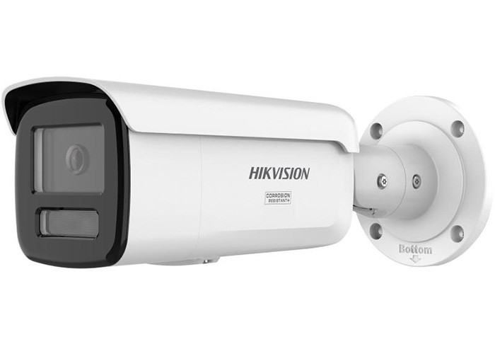 Telecamera Bullet IP ColorVu 3.0 Immagini a colori 24/7, Risoluzione 4MP - 2688x1520, Frame rate 25 Fps @ 2688x1520, Sensore 1/1.8” Progressive Scan CMOS, Sensibilità: 0.0001 Lux @ (F1.0, AGC ON),0 Lux con Luce bianca / IR. Day&Night IR Cut Filter, Ottica 4mm, WDR 130dB, portata illuminatori IR e luce bianca 60m Compressione video H.265+/H.265/H.264+/H.264. Smart Event: Scene change Detection. Perimeter protection: Line crossing, intrusion, region entrance, region exiting, discriminazione Uomo/Veicolo. Face capture, Basic Event: Motion Detection (discriminazione Uomo/Veicolo),video tampering alarm,exception. AcuSearch: notifica all'NVR Smart per una ricerca avanzata delle registrazioni, notifica al sw di centralizzazione, invio email. Integrazione: ONVIF (Profile S, Profile G, Profile T),ISAPI,SDK,ISUP. Stabilizzatore immagini EIS, ROI, Streams 3, Slot SD Card microSD/SDHC/SDXC fino a 512 GB (non fornita). Alimentazione 12 Vcc ± 25%, 0.83 A, max. 10, oppure PoE: IEEE 802.3af, Class 3, max. 12.5 W. Temperatura di esercizio -30 °C ~ +60 °C. Da esterno IP67, NEMA 4X.