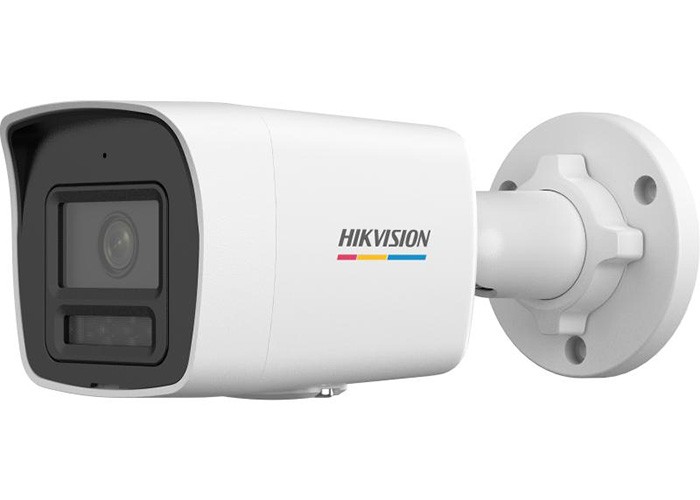 Telecamera Bullet SuperColorVu HikAI-ISP per la riduzione del rumore, 4MP (2560×1440 pixel) a 25 Fps. Di tipo Day&Night con filtro IR meccanico, Smart Hybrid Light illuminatori IR e luce bianca integrati portata 30 m, Sensore CMOS a scansione progressiva 1/1.8", sensibilità colore 0.0001 Lux @ (F1.0, AGC ON) 0 Lux con illuminatori. WDR 120dB, 3D-DNR, BLC, Ottica fissa 2.8mm, algoritmo di compressione H.265+, H.265, H.264+, H.264. Dual Stream, 6 connessioni simultanee, Funzioni Smart: ROI. Standard ONVIF Profile S, Profile G, Profile T. Protocolli TCP/IP, ICMP, DHCP, DNS, HTTP, RTP, RTSP, RTCP, NTP, IPv4, IPv6, IGMP, UDP, QoS, FTP, SMTP. Motion Detection 3.0 con filtro Human&Vehicle, video tampering. Modalità "Rotate" di inquadratura in 9:16, privacy mask. Registrazione su NAS (NFS, SMB/CIFS), Scheda di rete Ethernet 100 Mbps. Notifica all'NVR Smart per una ricerca avanzata delle registrazioni, notifica al sw di centralizzazione, invio email. Supporta accesso a Hik-Connect. Web server di tipo multi browser, heartbeat, Alimentazione 12 VDC ± 25%, 0.58 A oppure PoE: IEEE 802.3af, Class 3, max. 9 W, protezione inversione di polarità, IP67. Temperatura di esercizio -30 °C ~ +60 °C.