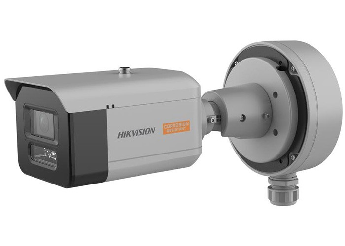 Telecamera Bullet IP Smart Hybrid Light in polimero anticorrosione. Risoluzione 4K (3840x2160) Frame Rate 20 Fps, Sensore 1/1.8" Progressive Scan CMOS. Sensibilità Colore:0.0008 Lux @ (F1.2, AGC ON),0 Lux con illuminatori IR e luce bianca portata 50 m, Day/Night auto, programmato, su evento. Ottica varifocale motorizzata 2.7-13.5mm, BLC, HLC, 3D DNR, Defog, WDR 130 dB. Codec video SVC: H.265+/H.265/H.264+/H.264, Funzioni Smart: discriminazione Uomo/Veicolo Line crossing, intrusion, region entrance, region exiting. Scene change detection, audio exception detection, defocus detection, unattended baggage detection, object removal detection. ANR, ROI. Slot SD Card microSD/microSDHC/microSDXC fino a 1TB (non fornita) memory card encryption. Protocolli: TCP/IP, ICMP, HTTP, HTTPS, FTP, DHCP, DNS, DDNS, RTP, RTSP, NTP, UPnP, SMTP, IGMP, 802.1X, QoS, IPv4, IPv6, UDP, Bonjour, SSL/TLS, PPPoE, SFTP, ARP, SNMP, WebSocket, WebSockets, SRTP, ONVIF (Profile S, Profile G, Profile T),ISAPI,SDK,ISUP. Scheda Ethernet 10/100 Mbps. Ingressi/Uscite: Audio 1/1, Allarme 1/1, RS-485 (Half duplex, HIKVISION, Pelco-P, Pelco-D, self-adaptive). HEOP 1.5 Tops computing power, 60 MB system memory, 371 MB smart RAM, and 2 GB eMMC. Alimentazione 12 Vcc ± 25%, 0.84 A, oppure PoE: IEEE 802.3af, Class 3, max. 21 W. Temperatura di esercizio -30 °C ~ +60 °C umidità 95%, da esterno IP68, IK10 Standard Anticorrosione C5, NEMA 4X.