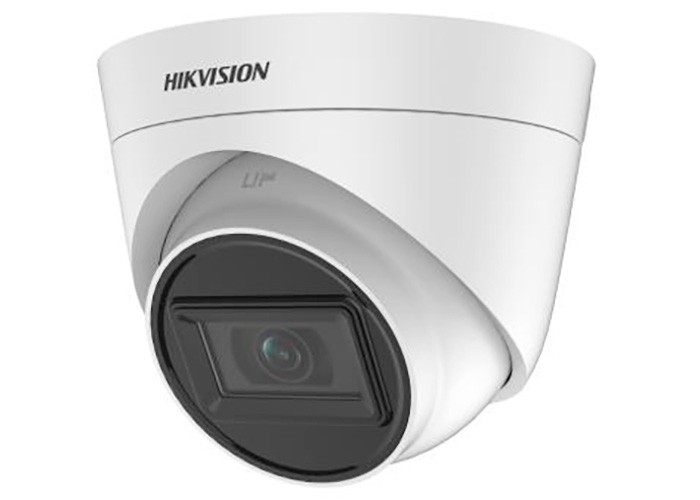 Telecamera Turret HD-TVI PoC 5MP di tipo Day&Night con filtro IR meccanico, in contenitore per esterno IP67, illuminatore EXIR 2.0 integrato fino a 20m, Sensore 5MP CMOS, sensibilità 0.01 Lux F1.2 con AGC attivo, 0 Lux con IR, Ottica fissa 2.8mm. Supporta 3D Digital Noise Reduction, BLC, Smart IR. dWDR dati Up to Coax con HIKVISION-C. Uscita video HD-TVI, Alimentazione 12 Vcc 5 W. Temperatura di esercizio da -40 °C ~ +60 °C. OSD. Grado di protezione IP67