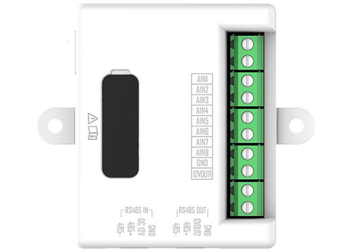 Interfaccia ingressi pulsanti fisici di pulsantiere di terze parti (es. ottone o personalizzate) dispone di 8 ingressi e può essere connessa ai posti esterni modulari versione "B" fino ad un massimo di 20 interfacce. A bordo 1 uscita in tensione 12 Vcc 4 W max. per eventuale alimentazione retro illuminazione. Indirizzamento tramite banco a 8 dip switch. Dimensioni 62,2x55x18mm. Alimentazione 12 Vcc. Comunicazione in RS-485. Temperatura di lavoro -30 °C ~ +60 °C