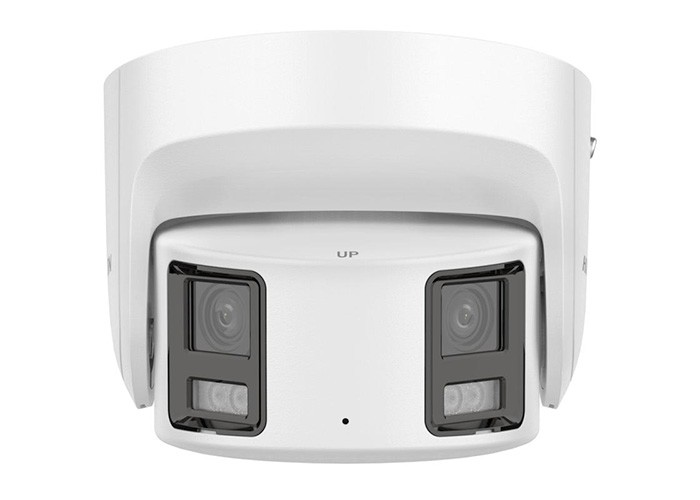 Telecamera Panoramica Turret 4MP (3040x1368) 25 Fps. Sensore 2x 1/2.5" Progressive Scan CMOS, colore 0.003 lux (F1.6, AGC ON), 0 lux con IR, illuminatore smart Portata 30 m, 2x Ottica fissa 2.8mm. Dual lens fusion technology, angolo di visuale orizzontale 180°, verticale 81°, BLC, HLC, 3D DNR, WDR 120 dB. Algoritmo di compressione H.265+/H.265/H.264+/H.264. Funzioni smart: Line crossing Detection, intrusion Detection, region entrance Detection, region exiting Detection (tecnologia AcuSense discriminazione uomo/veicolo), scene change Detection. AcuSearch: notifica all'NVR Smart per una ricerca avanzata delle registrazioni, notifica al sw di centralizzazione, invio email. Luce stroboscopica e Allarme audio. ANR, ROI. Slot per scheda SD e SD/SDHC fino a 256 GB (non fornita). Protocolli TCP/IP, ICMP, HTTP, HTTPS, FTP. DHCP. DNS. DDNS, RTP, RTSP, NTP, UPnP, SMTP, IGMP, 802.1X, QoS, IPv6, UDP, Bonjour, SSL/TLS, PPPOE, SNMP, ONVIF (Profile S, Profile G, Profile T), Scheda Ethernet 10/100 Mbps, Audio: 1/1. Allarme: 1/1. Alimentazione 12 Vcc o POE 10, 5 W Max. Temperatura di esercizio -30 °C ~ 60 °C, IP67