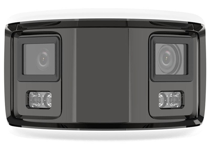 Telecamera Panoramica Bullet 6MP (3632x1632) 20 Fps. Sensore 2x 1/2.5" Progressive Scan CMOS, colore 0.003 lux (F1.6, AGC ON), 0 lux con IR, illuminatore smart Portata 30 m, 2x Ottica fissa 2.8mm. Dual lens fusion technology, angolo di visuale orizzontale 180°, verticale 81°, BLC, HLC, 3D DNR, WDR 120 dB. Algoritmo di compressione H.265+/H.265/H.264+/H.264. Funzioni smart: Line crossing Detection, intrusion Detection, region entrance Detection, region exiting Detection (tecnologia AcuSense discriminazione uomo/veicolo), scene change Detection. AcuSearch: notifica all'NVR Smart per una ricerca avanzata delle registrazioni, notifica al sw di centralizzazione, invio email. Luce stroboscopica e Allarme audio. ANR, ROI. Slot per scheda SD e SD/SDHC fino a 256 GB (non fornita). Protocolli TCP/IP, ICMP, HTTP, HTTPS, FTP. DHCP. DNS. DDNS, RTP, RTSP, NTP, UPnP, SMTP, IGMP, 802.1X, QoS, IPv6, UDP, Bonjour, SSL/TLS, PPPOE, SNMP, ONVIF (Profile S, Profile G, Profile T), Scheda Ethernet 10/100 Mbps, Audio: 1/1. Allarme: 1/1. Alimentazione 12 Vcc o POE 10, 5 W Max. Temperatura di esercizio -30 °C ~ 60 °C, IP67