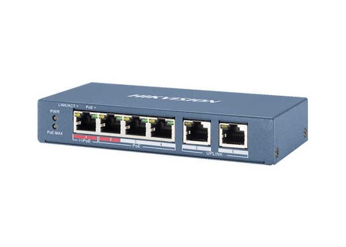 Switch 6 porte. Poe: 4: IEEE 802.3af, IEEE 802.3at. Tipologia: 10/100. Poe Budget Singola Porta: 30 W. PoE Budget Totale: 35 W. distanza Poe: Extended Mode 300 m. Uplink: 2. Tipologia Uplink: 10/100. Tipo: L2 Unmanaged. Case: Metallico. Banda: 1.6 Gbps. Funzionalità: 6 kV Surge Protection, Temperatura di funzionamento: -10 °C ~ +40 °C. Alimentazione: 48 Vcc, 0.8A