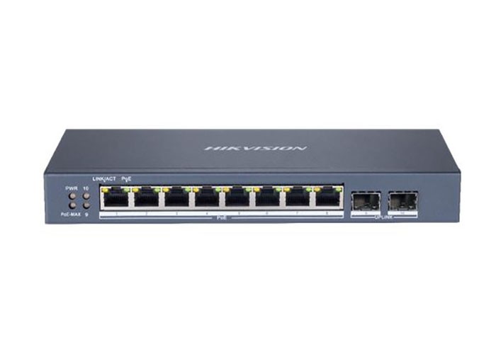 Switch 10 porte Gigabit: 8: IEEE 802.3af, IEEE 802.3at. Tipologia: 10/100/1000 Mbps Tipo Poe: 30 W. Budget Totale: 110 W distanza Poe: Extended Mode 300 m. Uplink: 2. Tipologia Uplink: SFP, Tipo: L2 Smart Managed. Case: Metallico. Banda: 20 Gbps. Funzionalità: Network Topology, Health Monitor, Real time alarm push, Storm Control, Rate-Limiting, Port Mirroring, Link Aggregation, Port Isolation, QoS, VLAN, STP, SNMP, LLDP, Temperatura di funzionamento: -10 °C ~ +55 °C. Alimentazione: 48 Vcc 2.5 A