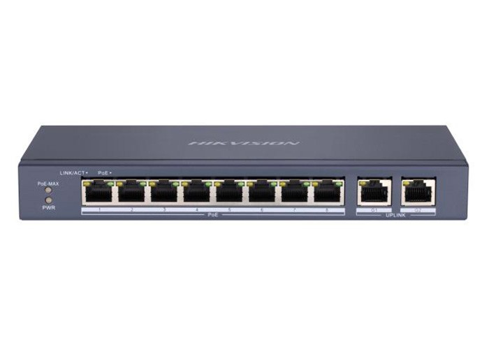 L2, Smart Managed, 8 Gigabit RJ45 PoE ports, 2 Gigabit RJ45 port, 802.3af/at, PoE power budget 110W, Max. 300 meter PoE transmission, Supports Hik-Central/iVMS 4200/Hik-Partner Pro Unified Topology Management, cloud management, Rack mount
