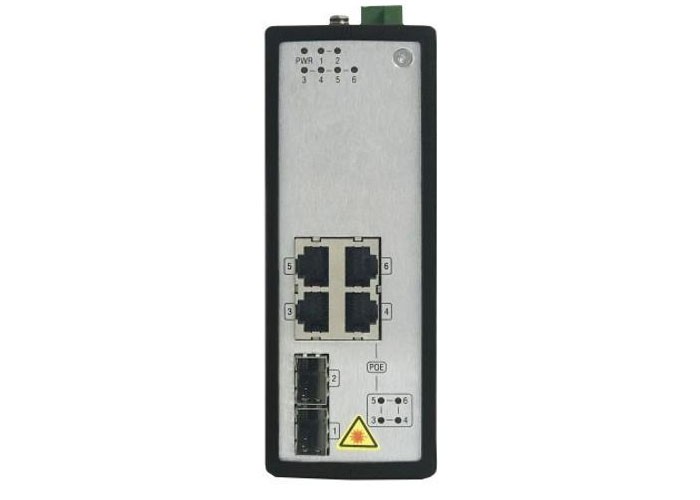 Switch 6 porte. Poe: 4: IEEE 802.3af, IEEE 802.3at . Tipologia: 10/100/1000. Tipo Poe: 30 W. Budget Totale: 120 W. Uplink: 2. Tipologia Uplink: SFP. Tipo: L2 Unmanaged. Case: Metallico. Banda: 20 Gbps. Temperatura di funzionamento: -40 °C ~ +75 °C. (IP40) Alimentazione: 44~57 Vcc (non incluso)