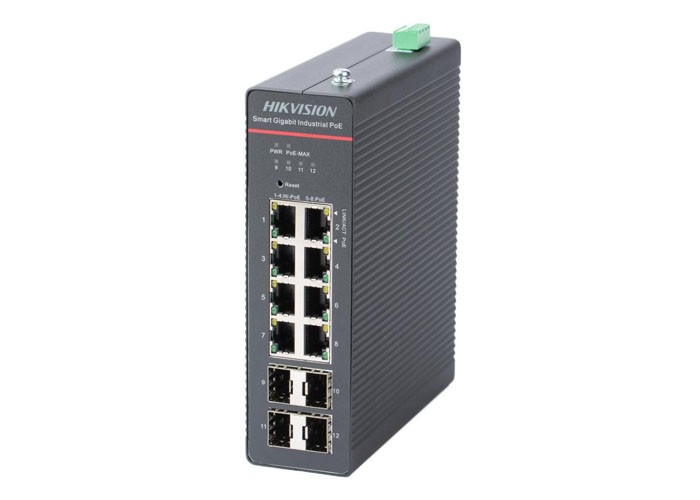 L2, Smart Managed, 8 Gigabit PoE ports, 4 Gigabit SFP ports, 802.3af/at/bt, port 1-4 support Hi-PoE 90w, power budget ?300w( based on power supply, power supply unit not included ), -40°C to 75°C, HPP Cloud managed, VLAN, STP/RSTP /ERPS, DHCP Snooping, ACL, IP&MAC filter based on port, SNMP V1/V2C, Max. 300 meter PoE transmission, DIN rail, IP40