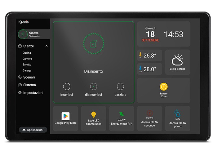 conexa è la nuova tastiera IP touchscreen di Ksenia Security ideale per il controllo dell’impianto di Sicurezza e Domotica.