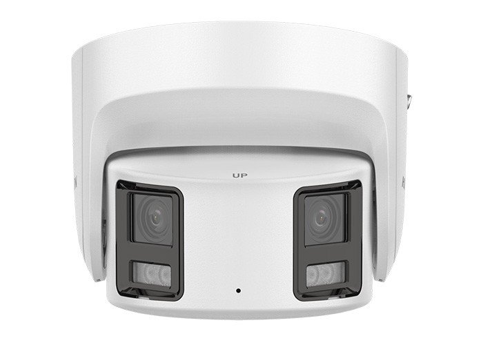 Telecamera Panoramica Turret 4K (5120x1440), 20 Fps. Sensore 2x 1/1.8" Progressive Scan CMOS, colore 0, 0005 lux (F1.0, AGC ON), 0 lux con Illuminatore Portata 40 m, 2x. Ottica fissa 4 mm. Dual Lens fusion technology, angolo di visuale orizzontale 180°, verticale 44°, BLC, HLC, 3D DNR, WDR 130 dB. Algoritmo di compressione H.265+, H.265, H.264+, H.264. Funzioni Smart: Line crossing detection, intrusion detection, region entrance detection, region exiting detection: (tecnologia DEEP LEARNING discriminazione uomo/veicolo), scene change detection. Luce stroboscopica e Allarme audio. ANR, ROI. Slot per scheda SD e SD/SDHC fino a 256 GB (non fornita). Protocolli TCP/IP, ICMP, HTTP, HTTPS, FTP. DHCP. DNS. DDNS, RTP, RTSP, NTP, UPnP, SMTP, IGMP, 802.1X, QoS, IPv6, UDP, Bonjour, SSL/TLS, PPPOE, SNMP, ONVIF (Profile S, Profile G, Profile T), Scheda Ethernet 10/100 Mbps, Audio: 1/1. Allarme: 1/1. Alimentazione 12 Vcc o POE 10, 5 W ? Temperatura di esercizio -30 °C ~ 60 °C, IP67