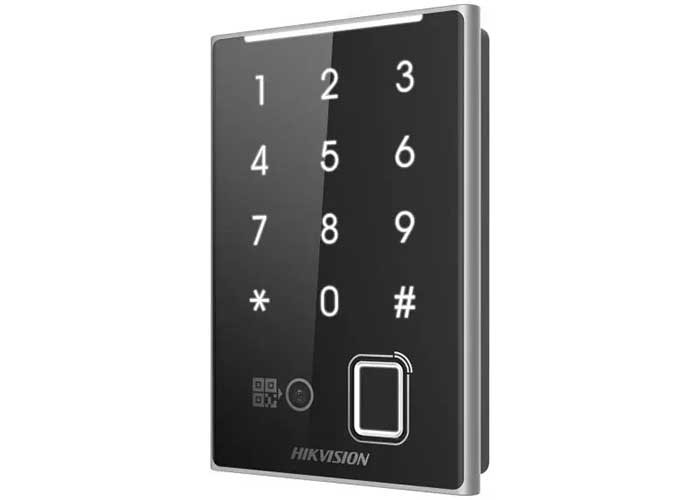 Lettore di tessere Desfire / M Card 13.5 MHz, QR e BAR Code Reader, Bluetooth e impronte digitali da esterno con tastiera, processore a 32 bit, costruzione in policarbonato / ABS, Range di Lettura Distanza ?50 mm, Tempo ?1 secondi, Range di Lettura Impronte Digitali 1:1 ? 1 secondo, 1:N ? 1.5 secondi, Capacità Impronte Digitali 5.000, led di segnalazione e buzzer, Interfacce di comunicazione RS-485 o Wiegand (W26/ W34), ID Setting DIP Switch, Tamper, Alimentazione 12 Vcc 2 W. Temperatura di esercizio -40 °C ~ +65 °C, Umidità di esercizio 10% ~ 90%, Grado di protezione da esterno IP65. Dimensioni 123x88x21 mm