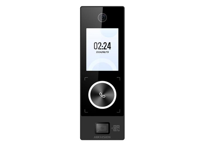 Terminale Hands Free. Display da 2.4 pollici, obiettivo 2 megapixel. Supporta WDR. Case metallico. Modulo di lettura schede Mifare incorporato. Capacità di memorizzazione Volti: 1000, Tessere: 3000, Eventi: 150000. IP65. Audio bidirezionale con client software, Indoor Station, Main station. Pulsante fisico per chiamata. Interfaccia di comunicazione TCP/IP, RS-485, Wiegand W26 e W34, Wi-Fi, Bluetooth. Configurazione mediante Web e mobile client. Supporta modalità AP. Supporta Hik-Connect. Alimentazione: DC 12V/1A (alimentatore incluso) o PoE, se alimentato PoE supporta l'alimentazione di una serratura 12VDC/1A. Supporta ISUP5.0, ISAPI. Tasso di precisione del riconoscimento facciale > 99%. Durata del riconoscimento del volto (1:N) ?0,33s. Distanza di riconoscimento del volto: 0,3 m ~ 1,5 m. Supporta riconoscimento QR code. Lock Control x1, Exit Button x1, Door Contact Input x1, Tamper x1, Temperatura di esercizio -30 °C ~ +60 °C. Umidità di esercizio 10% / 90%. Dimensioni 157x52x26 mm